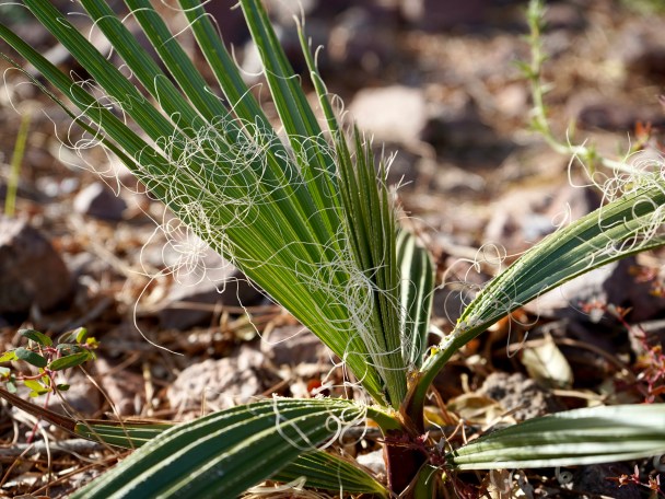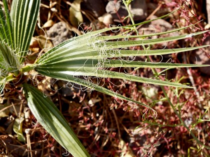 Photogenic little thing, with its festive, thread-like fibers. Apropos for this time of year. Looks a bit like yucca, but it’s a fledgling California fan palm (which I determined after perusing a few field guides). It caught my eye at my neighborhood park.