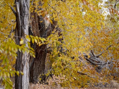 The trees themselves are hidden by a stuccoed wall that helps enclose the one-car garage in that spot. I muse that the dark lines are the promise of nature to always reassert itself.